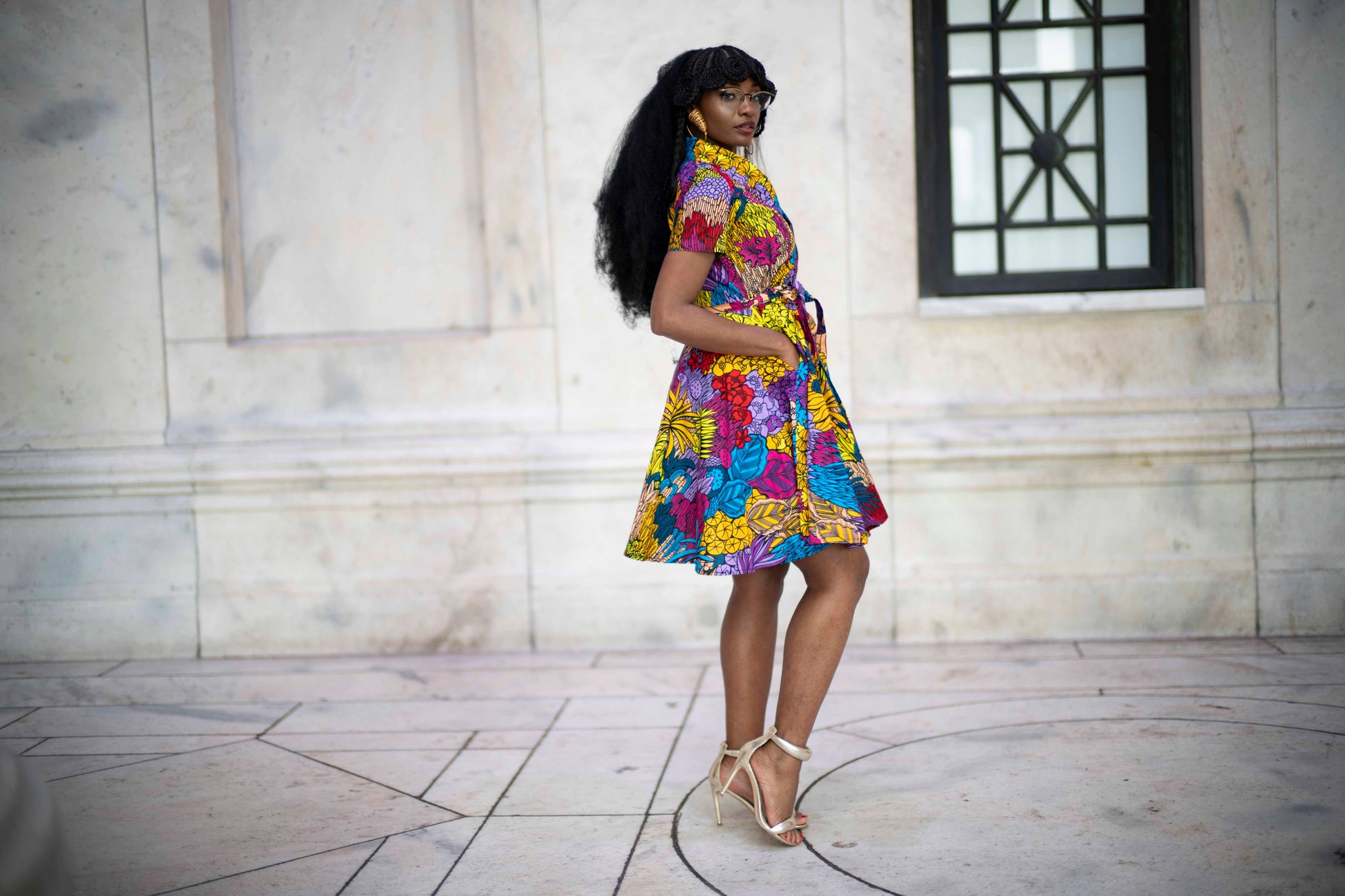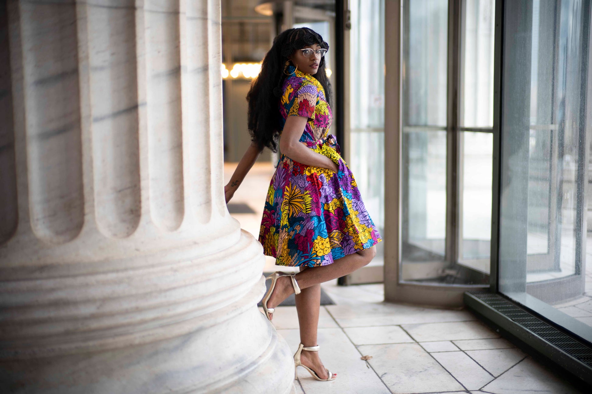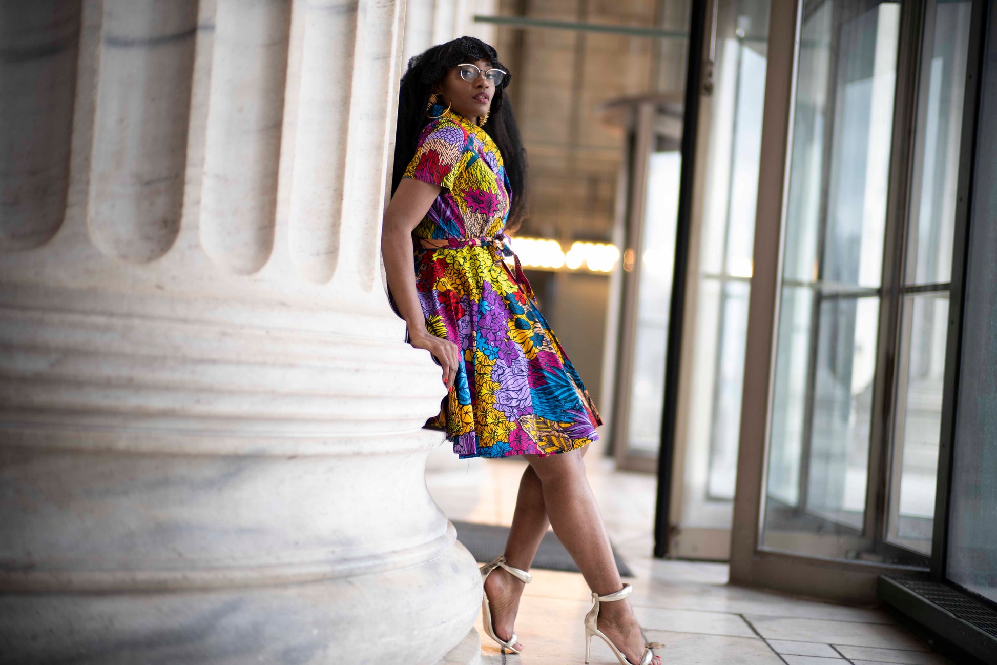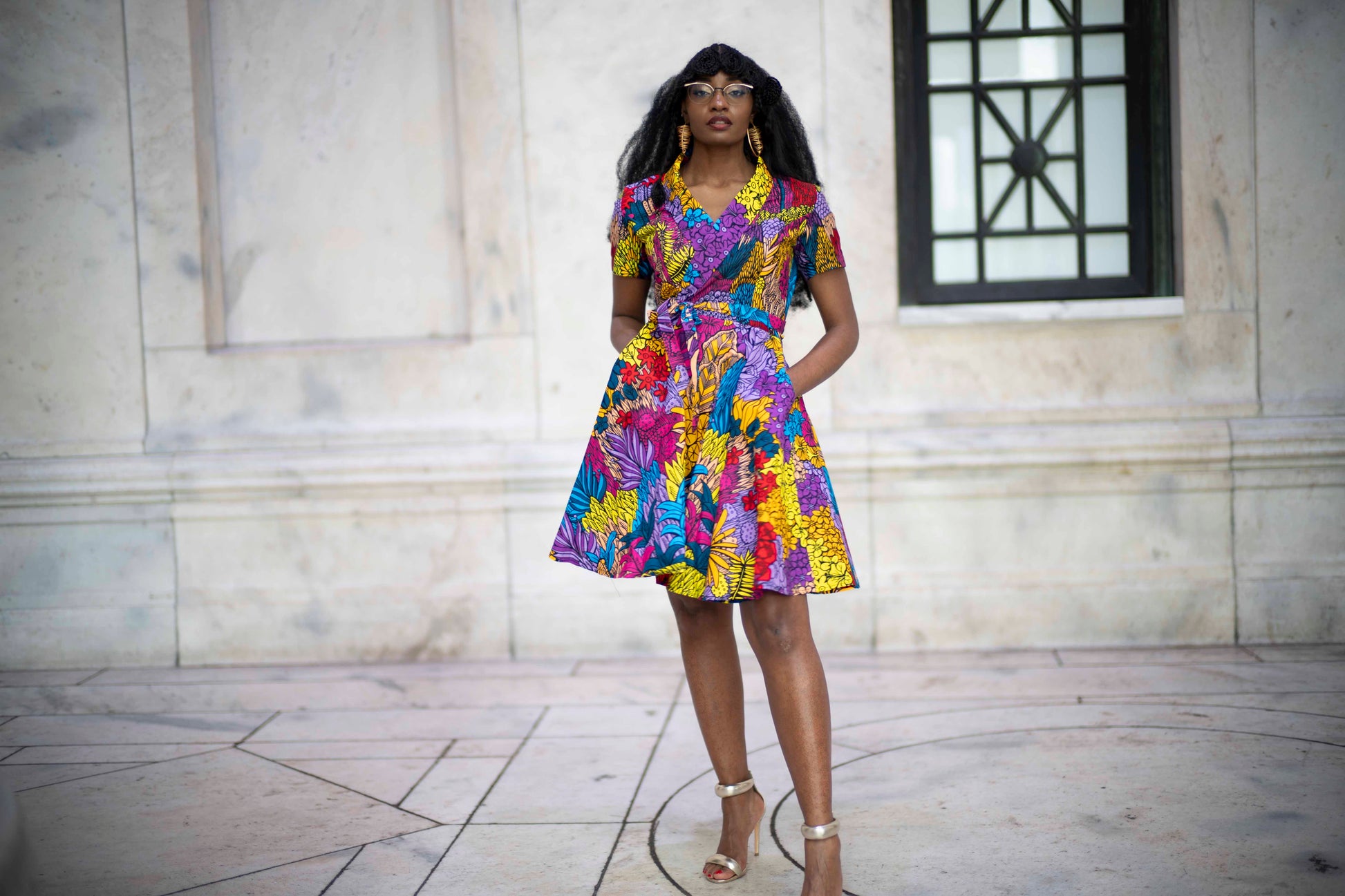 It's paired with an attached belt for wrapping. It can be worn as a dress, a jacket or a skirt.
